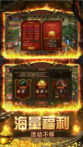 3、战斗特色:战斗超级自由,游戏环境公平公正,不氪金也能玩得嗨;可自由探索寻宝,全新传奇地图易融入;完美复刻端游界面,玩法类似。
