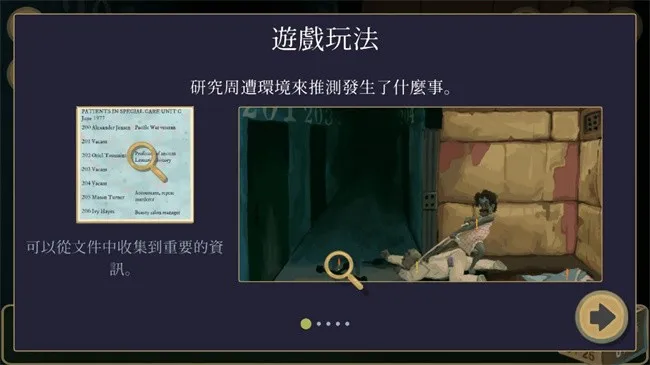 2、游戏特色鲜明,玩家能开启独立调查,以自己的节奏探索犯罪现场,通过点击收集线索、分析发现来推断案件,找出原因和罪魁祸首。全新界面让侦查与解谜过程更流畅,可快速收集关键词,在调查与推理间无缝切换,拼凑出章节总体剧情。