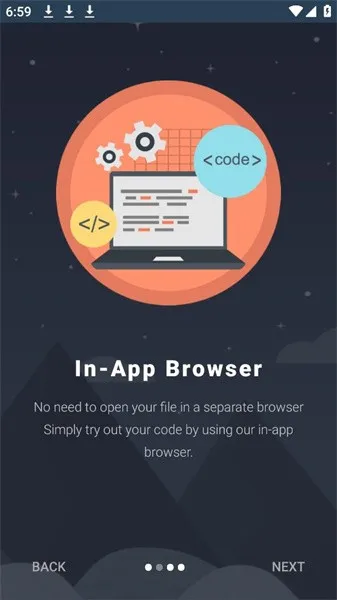 4、允许使用应用内浏览器轻松创建 HTML 网页设计,并能在内部查看器中预览网页,还可将项目导出到喜欢的设备。