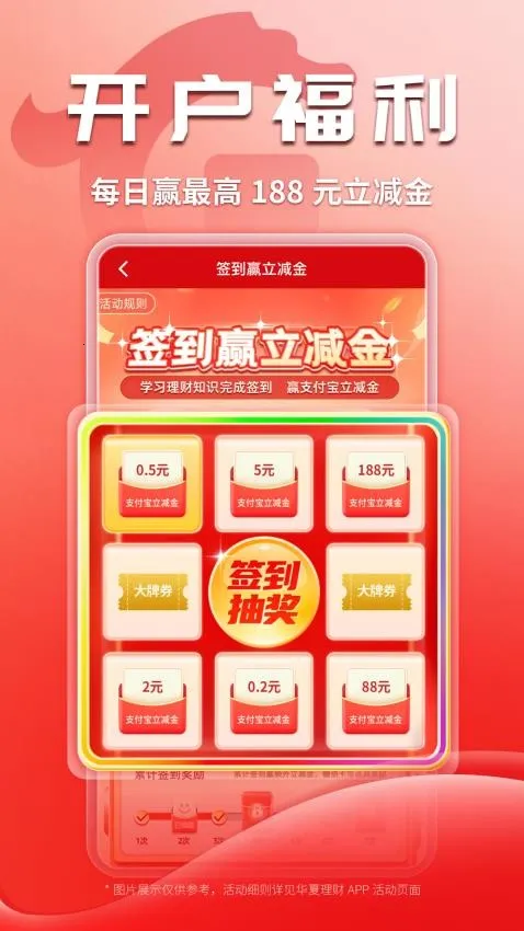 华夏理财最新手机版是便利的开户理财软件,为投资者提供服务。它有丰富优质理财产品,可在线查看行情、交易。具备模拟理财、智能分析等功能,还有极速开户、开户福利等特色,助您高效理财。