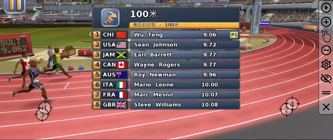 2、简单易上手玩法:游戏简化了运动项目操作要求,通过简单触屏和遥感就能掌握,每次玩前还有教程。比如100米冲刺疯狂点击屏幕,射箭依靠遥感瞄准等。