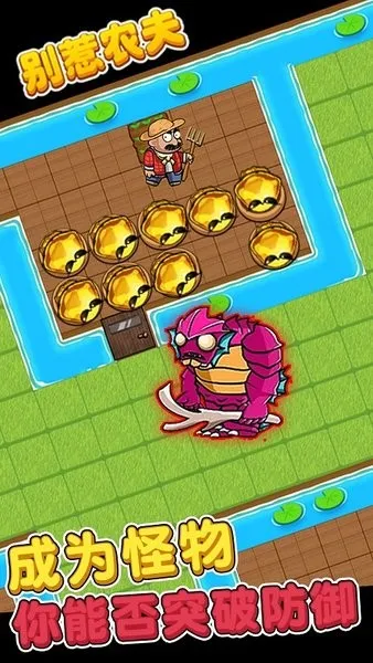 别惹农夫是策略塔防游戏,类似猛鬼宿舍。玩家可当农夫防守或变僵尸攻略,有丰富人物、植物、道具。操作简单,通过部署防线抵挡怪物,还能种植物升级,也有聊天系统,玩法多样,乐趣十足。