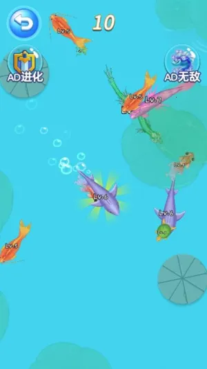 1、丰富的合成进化玩法:玩家操控小蝌蚪,通过不断合成相同形态生物,从蝌蚪到青蛙、乌龟,再到鲤鱼、鲨鱼,最终进化为神龙,体验从低级生物到强大神龙的完整蜕变历程,感受成长的成就感。