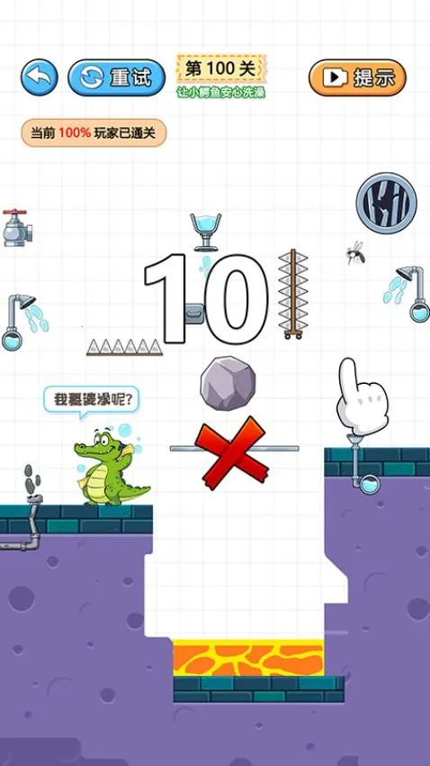 1、玩法新颖独特,结合物理模拟与路径规划。玩家需用手指在屏幕上划线制造水流通道,将清水引导至鳄鱼处完成清洁任务,还要观察蚊虫轨迹绘制隔离屏障,过程充满吸引力,让人乐在其中。
