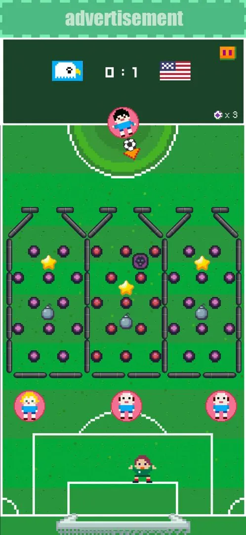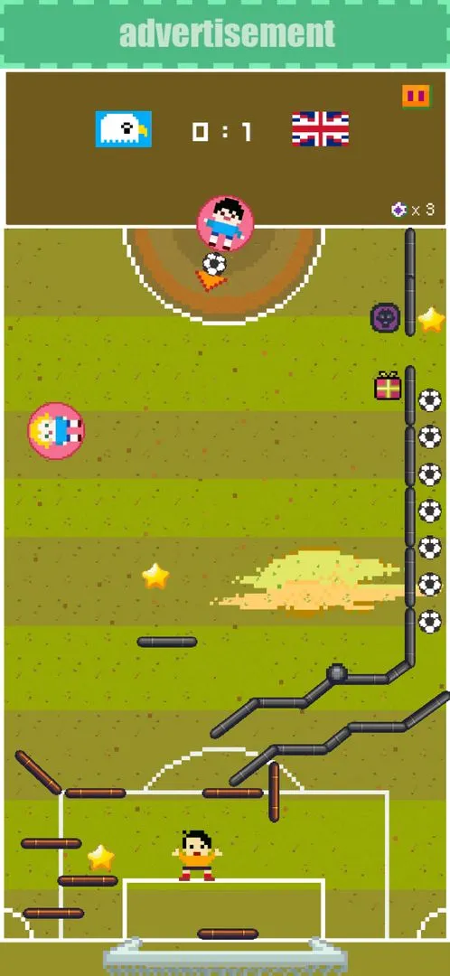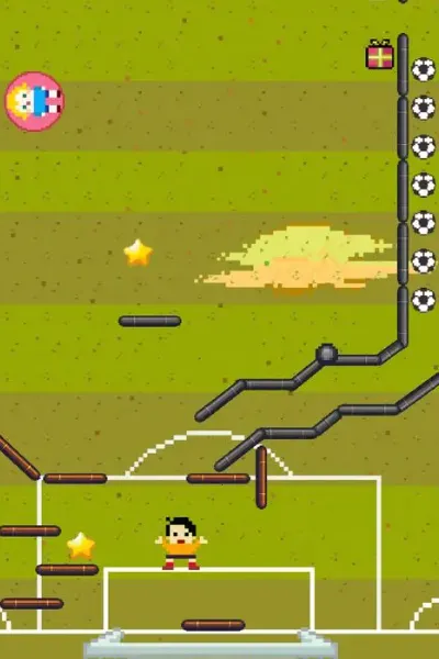 1、像素美术风格搭配简单操作与策略性玩法,玩家操控足球穿越移动、旋转、弹跳的多样障碍,在限定球数内射门得分,若平局还会触发刺激点球大战,带来别样足球竞技体验。