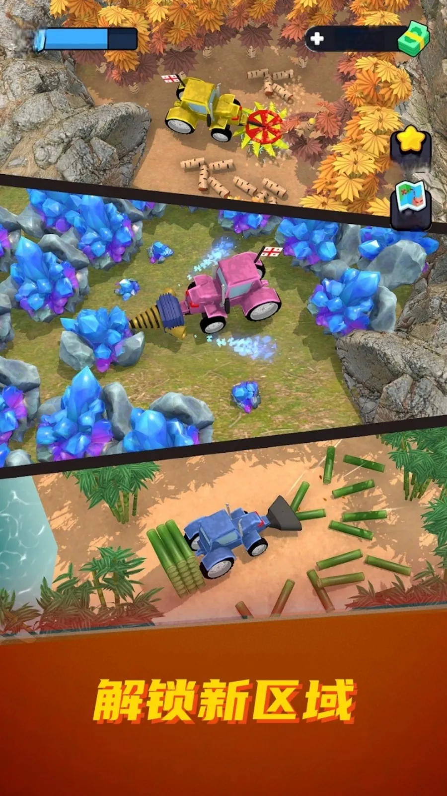 1、玩法自由且丰富,玩家可自由规划林场布局与产业方向,既能专注深加工,也能多元发展,还能解锁建筑装修与角色装扮,打造专属风格的木材帝国。同时,能从初始森林逐步解锁山脉和荒原等多样地形,每个场景有专属树种与稀有资源,需适配地形调整伐木策略。