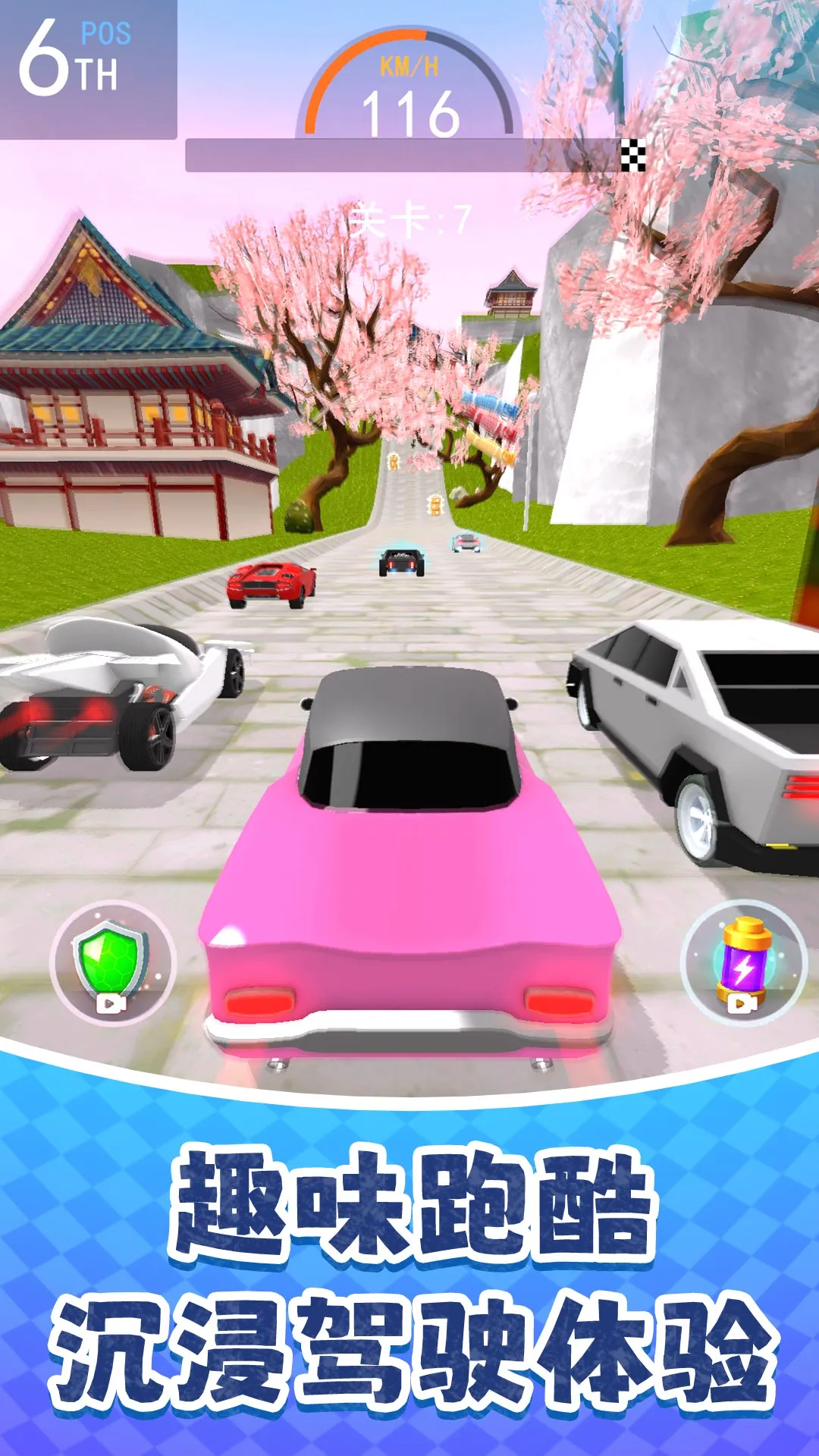 2、赛道风格多样且充满挑战,有复杂弯道、特殊地形,部分赛道还设有捷径或动态障碍,为竞速增添了策略性与新鲜感,让玩家每一次比赛都有不同体验。