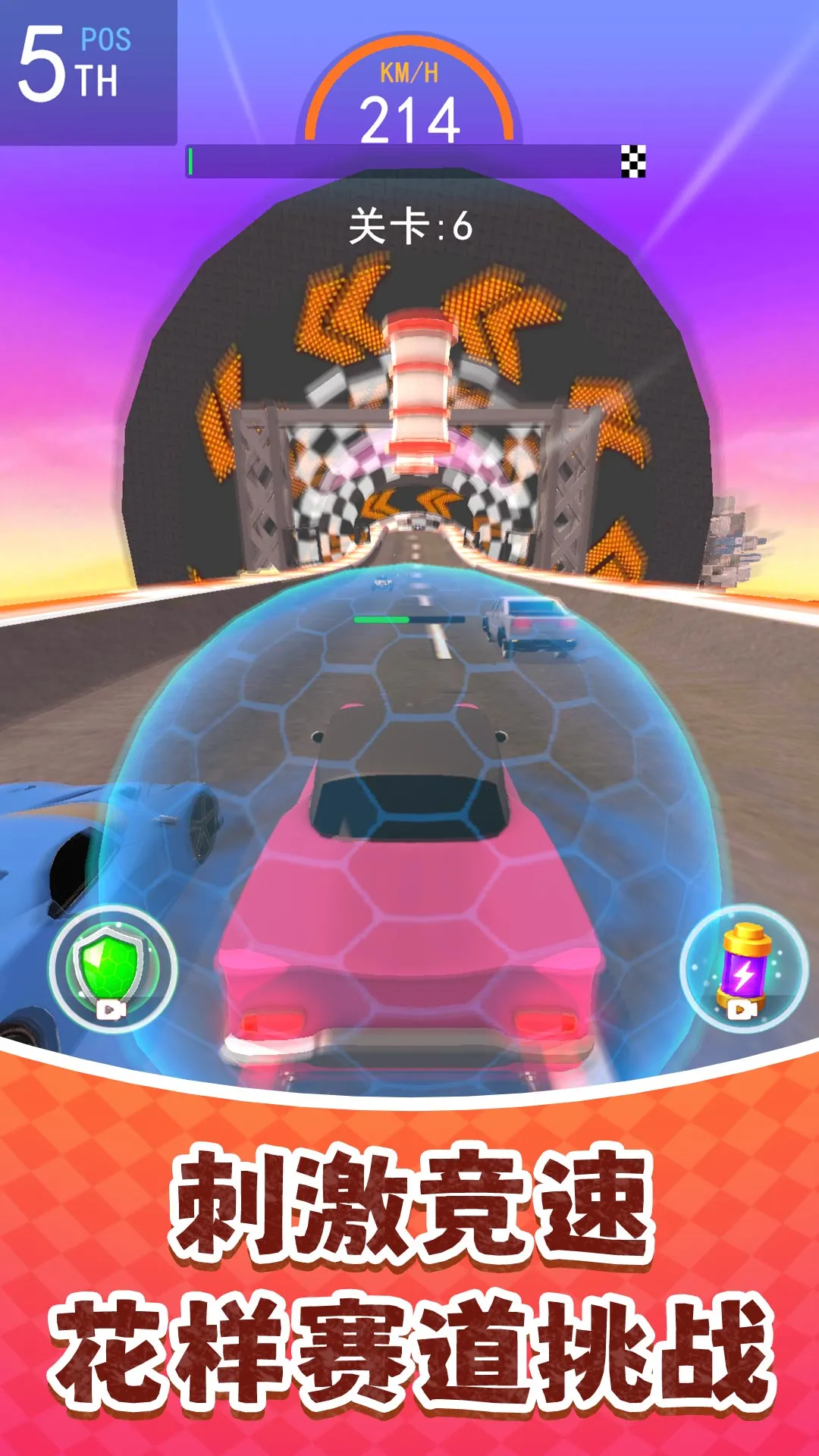 3、特色玩法体验:设置多种操控方式,操作简洁直观;赛道中可拾取功能道具,合理使用能打破僵局,增加对决的策略性与趣味性;以高速竞速为核心,让玩家在突破极限中感受刺激。