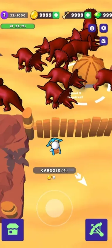 3、游戏优势显著,可经历各种关卡,免费收集强力武器。高度拟真的设定、完善的装备系统,让玩家在不同环境中猎杀生物积累经验与技巧。玩家抛出绳子捕捉恐龙等动物,乐趣十足。