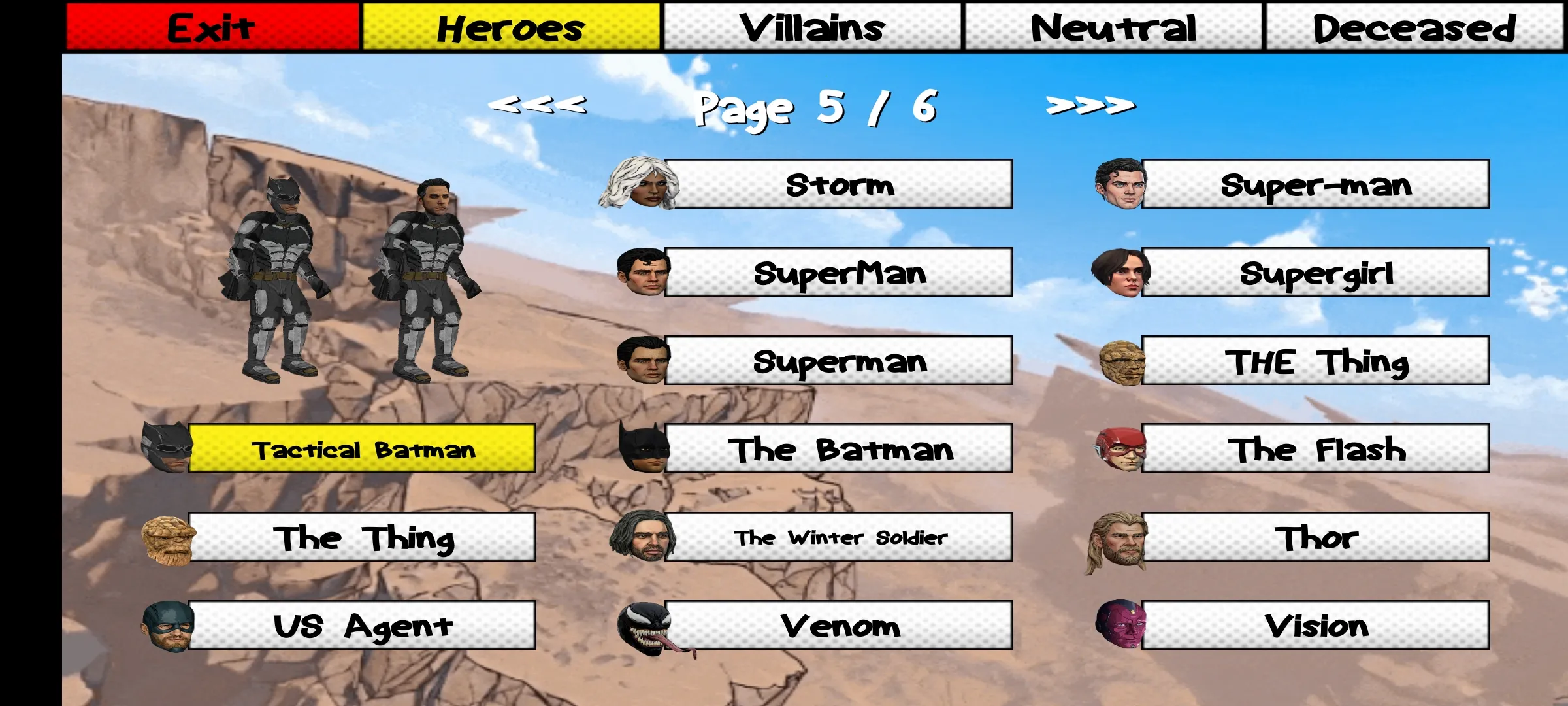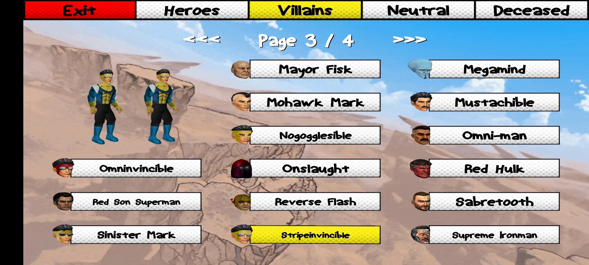 漫威VS无敌少侠2025官方最新版本是一款玩家自制格斗对战游戏,融合漫威与无敌少侠角色。有高人气角色、还原场景、平衡的游戏性。还有专属技能演出,支持多种对战模式,画面简洁操作易上手,带来超棒格斗体验。