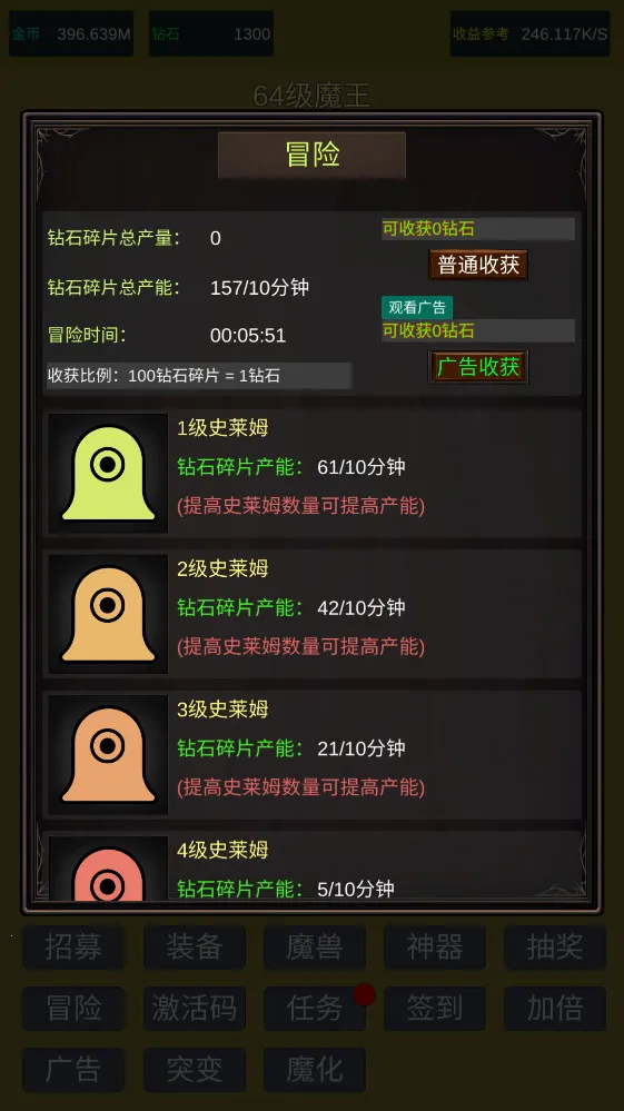 1. 玩法轻松:全自动躺赢模式,史莱姆自动前进战斗,离线也能收获,一键收取资源超便捷。