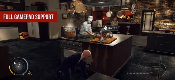 3. 游戏特色鲜明,标志性风格融入背景,能悄无声息杀戮或全副武装冲锋,自定义触控可完美贴合操作,杀手本能模式实用。