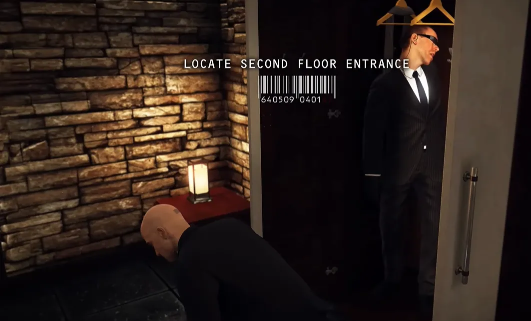 返回一层后,沿楼梯上到二楼。进入卧室,从洗手盆旁取得安眠药,迅速返回厨房。等厨师离开,将安眠药投入鱼锅中。厨师昏迷后,将他拖进冰柜。接着在大厅柜台的咖啡杯中下药,安保主管训话后会来喝咖啡并倒地昏迷。拾取他身上的钥匙卡,把尸体藏入旁边衣柜。