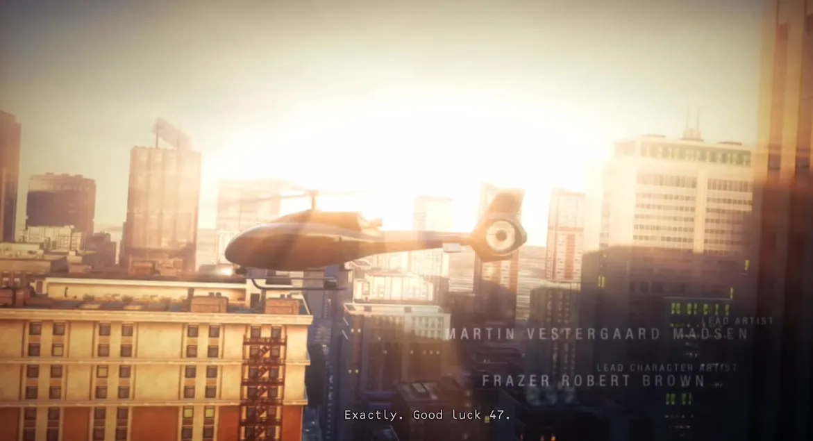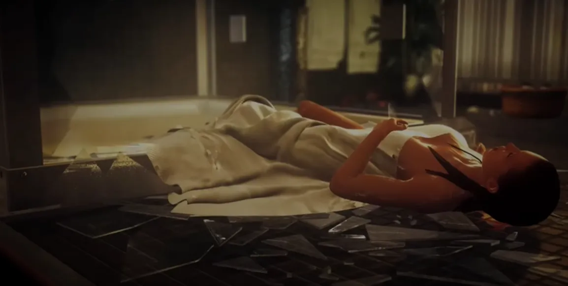 进入房间后,47扣下扳机击中黛安娜。面对濒死的上司,他质问她为何背叛组织。黛安娜没有辩解,只求他带走一个女孩——维多利亚,并永远远离组织的追捕。
