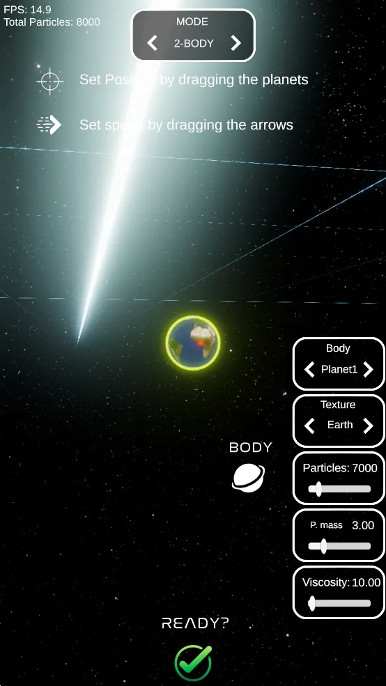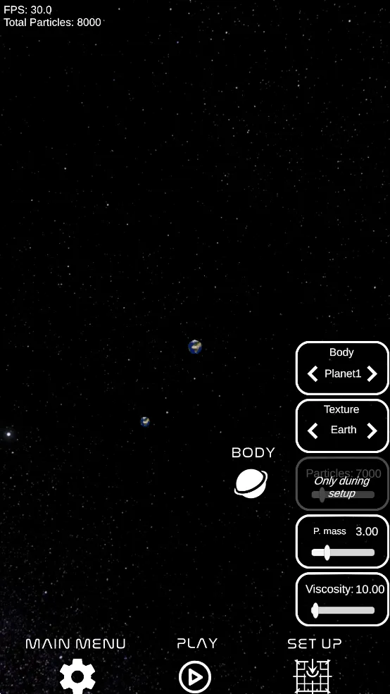 2、游戏高度自由,走向与结果全由玩家操作和设置决定。它兼容多种设备系统,调节精度和粒子计数就能流畅运行,还提供多样星球供玩家选择。