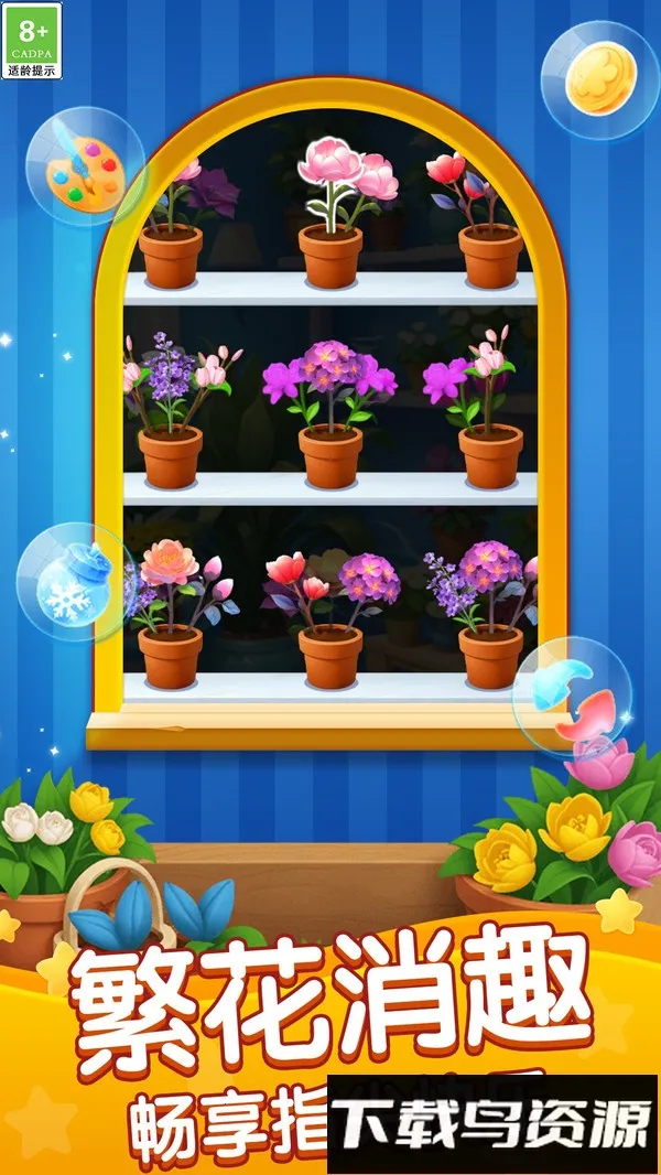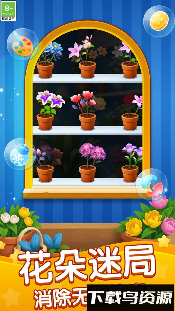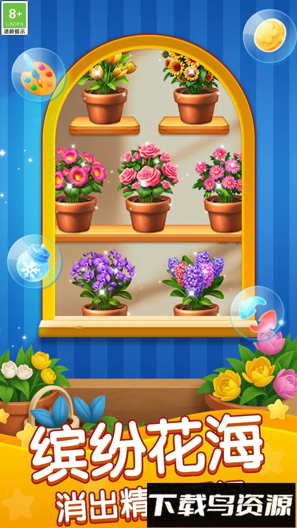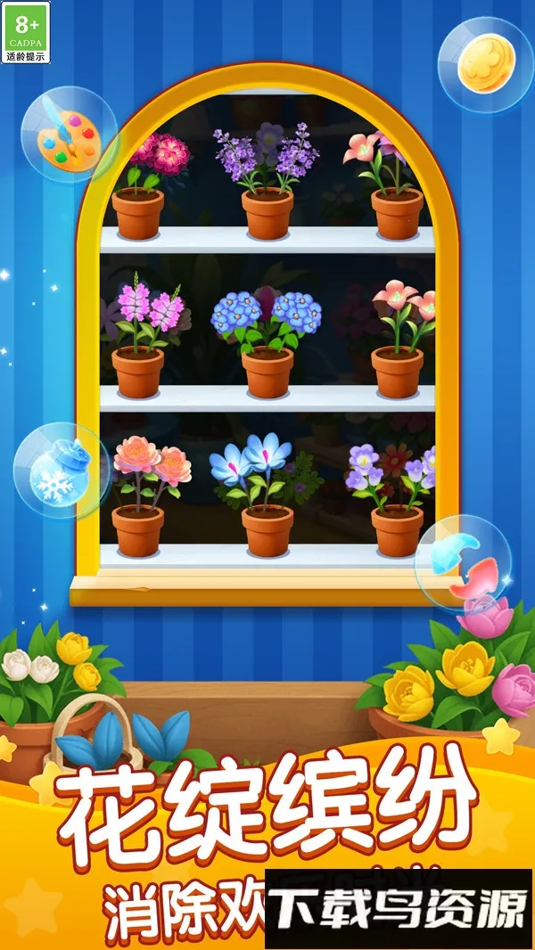 1、视觉体验佳:游戏以温暖明亮的花卉为主题,画面风格细腻生动,精致的花朵造型与流畅动画配合温暖色调,每一次消除都绽放绚丽光影,带来放松与温馨的视觉感受,轻快悦耳的背景音乐搭配清脆音效,营造沉浸式氛围。