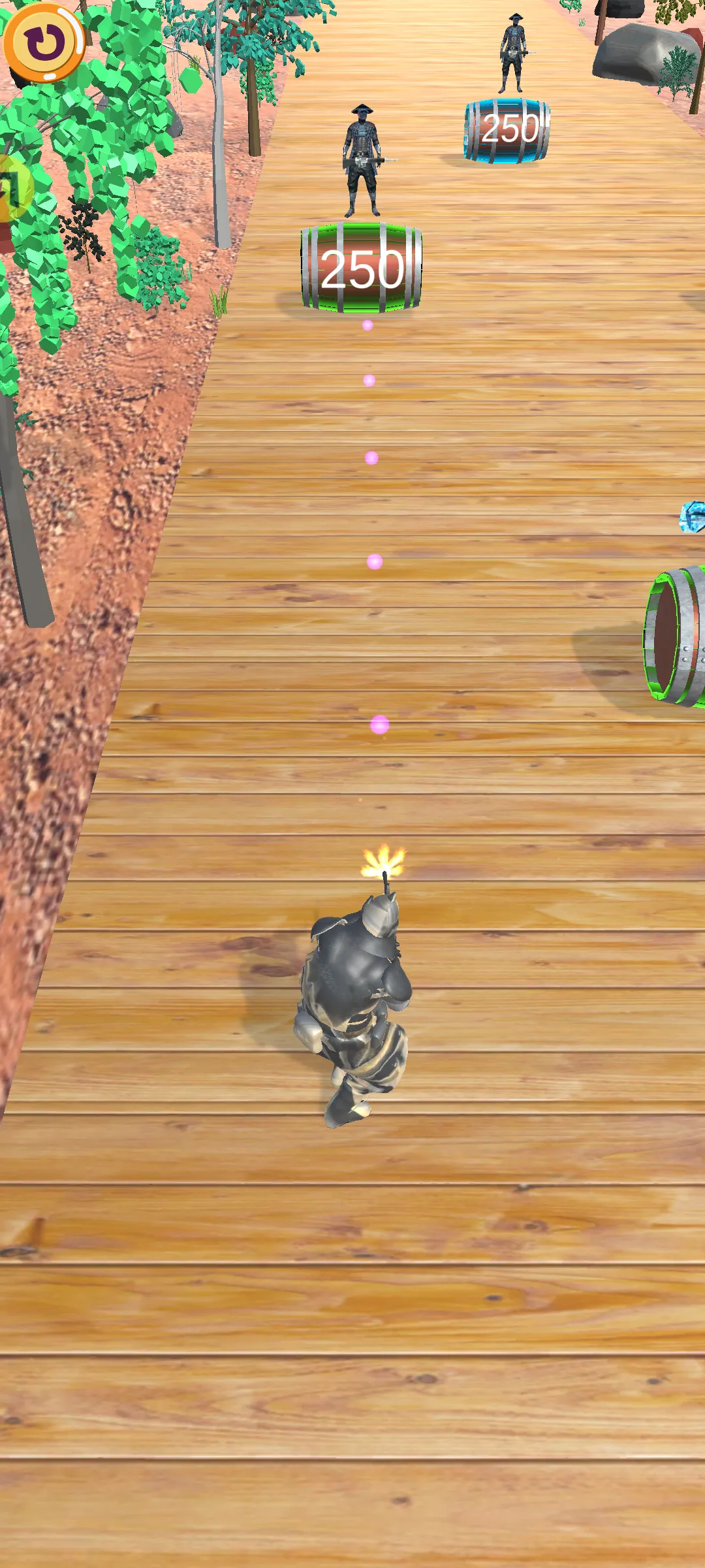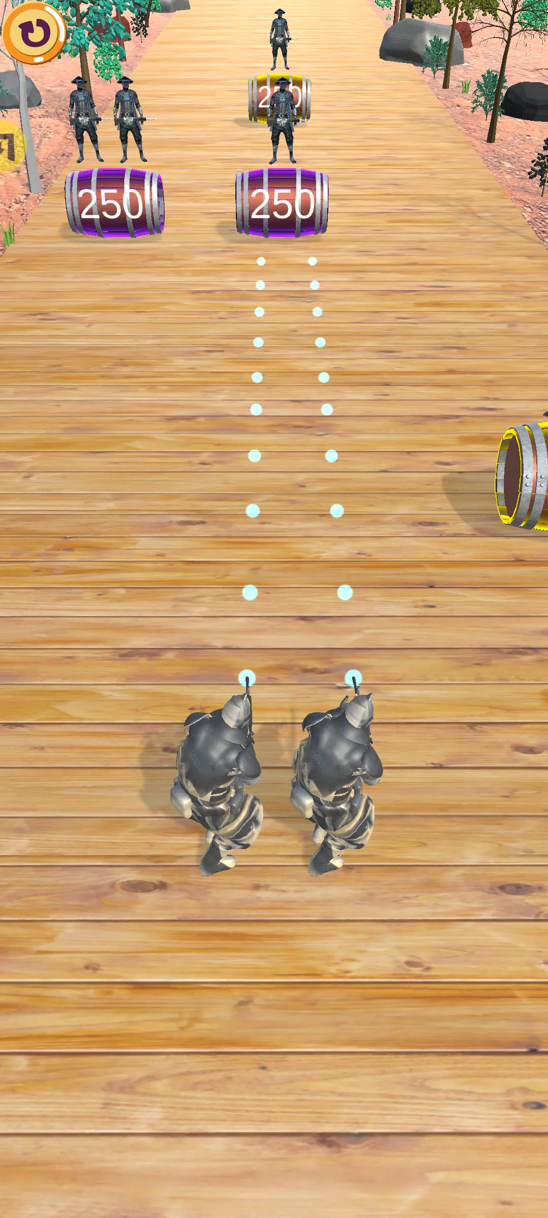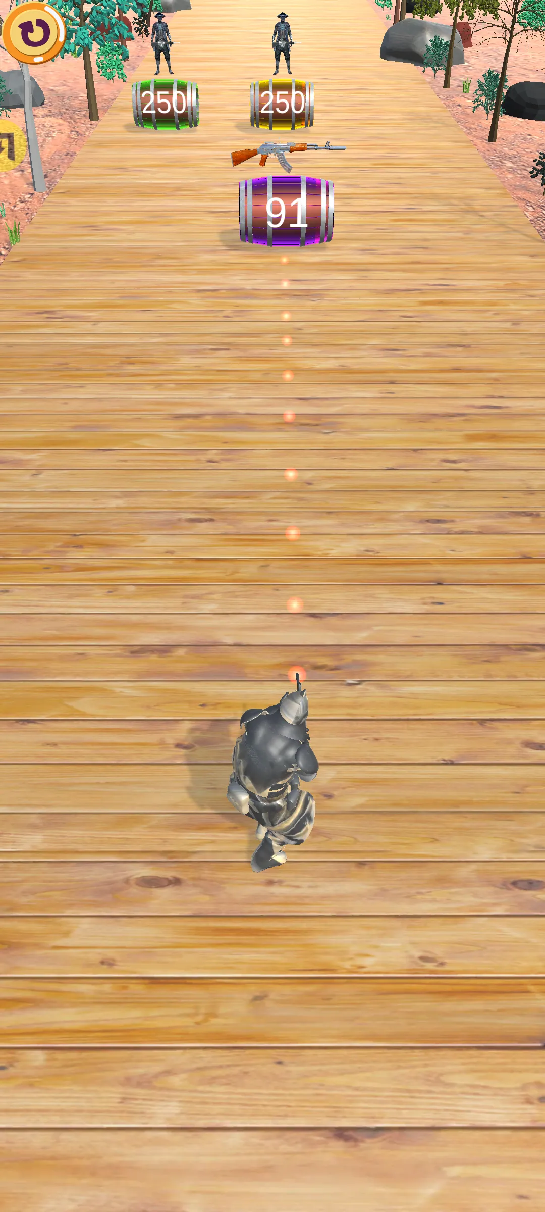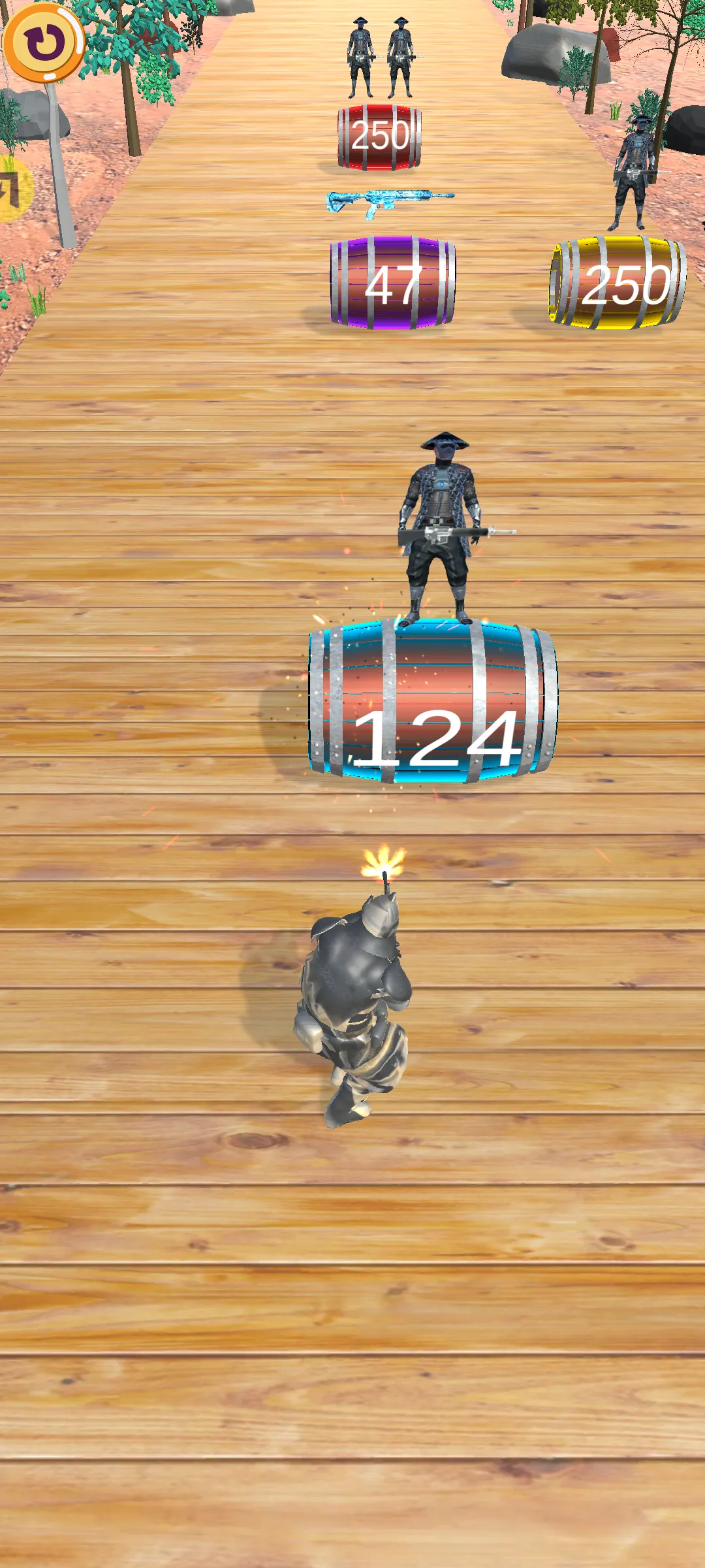 1、玩法简单直接,玩家只需左右移动并射击木桶即可获得新武器,容易上手,能让玩家迅速沉浸其中。