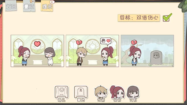2、简单操作与经典角色:操作极简,单指拖动人物或道具至指定方格即可触发剧情。还有熟悉的影视情侣、动漫CP穿越而来,在原创剧情中延续或颠覆原有感情线,带来怀旧惊喜。