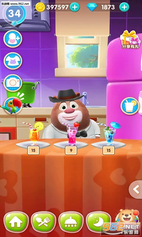 2、玩法丰富多样,有基础养成玩法,可照顾熊大熊二的衣食起居,还能自由布置家园、为熊熊换装;有串门玩法,能拜访好友家园,分享装扮灵感;此外还有绘画、乐园管理等小游戏挑战。
