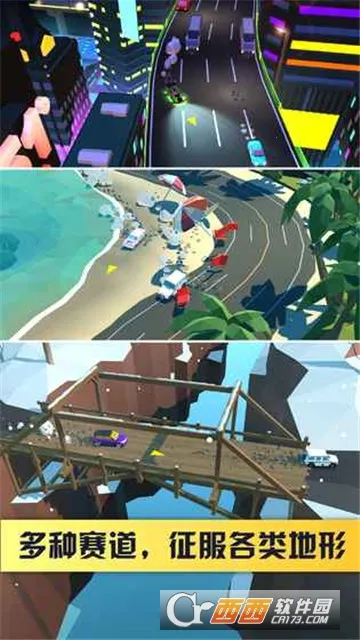 2、丰富内容玩法:游戏拥有超过30款风格各异的车辆,且持续更新,还有专属皮肤可一键切换。地图场景丰富,涵盖海滩、河床、大桥、城市等,有多种天气效果、隐藏近道与加速带。玩法多样,有组队任务、个人挑战、联赛、保龄大战、淘汰赛等,单人或组队挑战都百玩不厌。