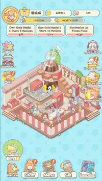 2、游戏亮点颇多。能解锁特殊食材,发现新现象;有众多带背景故事的角色;丰富食材可组合出不同佳肴。食材合成能做出新菜,员工是Q萌小动物,会自动处理任务。
