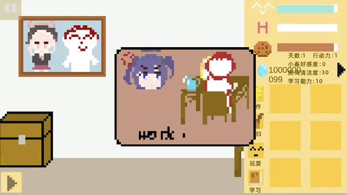 想知道如何养成小春吗?《小春养成记》攻略来啦!这是一款超有趣的碧蓝档案同人向像素风格养成游戏。在游戏里,你能化身为小春的陪伴者,和她共度50天校园生活。每天可为小春规划两次行动,合理分配时间很关键。首次外出工作稳定得100石头,第二次收益不定。保持房间整洁,脏乱会降小春心情值。陪她玩耍能快速恢复心情,增进感情。定期辅导功课可提升学业能力,应对三场重要考试。体力耗尽时,让小春去卧室入睡就能推进日程。还能通过顶部菜单栏掌握关键数据,除主线培养,带她参与种田逛街等活动。游戏特色满满,以对话驱动剧情,有多个可探索场景。玩家选择影响大,有七种结局路线。内置菜单版更是趣味十足,多场景自由切换互动,有丰富换装和个性化系统,融合多种玩法,还有多结局与随机事件,快来下载体验,为小春编织专属校园回忆吧!